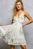 POL V-Neck Embroidered Tassel Smocked Waist Mini Dress