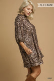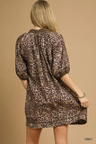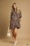 Umgee Full Size Leopard Print Mini Dress with Contrast Trim