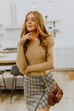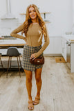 Just like the leaves fall, we are also falling for the Late To Class Plaid Mini Skort! A woven tartan plaid shapes a high waist with an asymmetrical button up front, side seam zipper, and built in shorts. We're absolutely obsessed with this 90's inspired skort. Pair with tights, your favorite boots, and a cozy sweater for the cutest fall look!