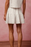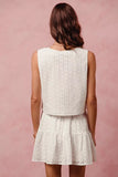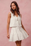 SO ME Floral Eyelet Lace Tie Front Vest Top and Tiered Mini Skirt Set