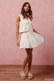 Elevate your summer style with the Floral Eyelet Lace Tie Front Vest Top and Tiered Mini Skirt Set, a charming and feminine ensemble. This set features a delicate eyelet lace tie front vest top paired with a flirty tiered mini skirt for a romantic and whimsical look. The floral design adds a touch of elegance, perfect for brunch dates or garden parties. With its lightweight and breathable fabric, this set is perfect for warm weather days. Embrace your inner romantic and stand out in this stunning Floral Eyelet Lace Tie Front Vest Top and Tiered Mini Skirt Set!
