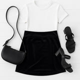 Meet The Scarlett Black Velvet Skirt-now with cozy pockets! This playful velvet skirt lets you stash your essentials while keeping your hands free for twirling. Soft, sleek, and oh-so-chic, it's perfect for adding a touch of glam with a dash of practicality.
