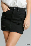 Umgee Distressed Raw Hem High Waist Denim Skirt