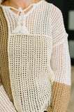 The Corner of the Block Loose Knit Sweater is the perfect blend of relaxed comfort and effortless style. Crafted from a lightweight sweater-knit fabric, this top features a flattering V-neckline with functional neckties that add a playful touch. The drop shoulder design enhances the laid-back vibe, while the exposed seam details lend a modern, edgy flair. Whether you're layering it over your favorite basics or wearing it solo, this cozy sweater is sure to become a go-to piece for any season.