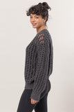 HYFVE Openwork Round Neck Long Sleeve Knit Cover Up