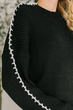 Cozy meets chic with this One Stitch at a Time pullover, where every detail tells a story. Crafted from mid-heavy weight ribbed knit with serious stretch, it's built for comfort that actually moves with you. The relaxed drop shoulder and banded ribbed round neckline create an effortlessly cool silhouette, while the crocheted blanket stitch detail adds artisanal charm and texture. Layer it, wear it solo—this pullover is your new go-to for laid-back style that feels as good as it looks.
