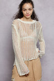 This round neck long sleeve sweater top is crafted in acrylic for a cozy feel. The relaxed fit offers a comfortable and flattering silhouette. The open-knit pattern adds texture and interest to the design. Perfect for layering or wearing on its own, this sweater top is versatile for various occasions. Stay stylish and warm with this fashionable addition to your wardrobe.
