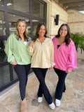This oversized half zip hoodie will be on repeat all year long! The lighter weight makes it a versatile transition piece through any season and the relaxed fit keeps you feeling comfy with denim or leggings. Featuring a half zipper, adjustable cinch waist, kangaroo pocket, a drop shoulder design and oversized hood.