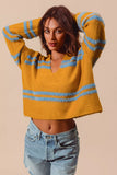 SO ME Fuzzy Hairy Stripe Deep U Neck Swetaer