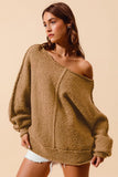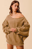 SO ME Loose Fit Exposed Seam Slouchy Boucle Sweater