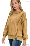 Zenana Acid Wash French Terry Exposed-Seam Sweatshirt
