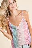 The Gradation Leopard Sleeveless Top combines a trendy leopard print with a stylish gradation design for a unique and eye-catching look. The sleeveless style is perfect for warm weather and can be easily layered for cooler days. The leopard print adds a touch of boldness and personality to the top, while the gradation design adds a modern twist. This top is a versatile piece that can be dressed up or down for various occasions. Make a statement with this fashionable and edgy sleeveless top that will take your outfit to the next level!