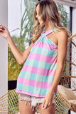 This tank top showcases a multi-color plaid pattern with a brushed neck detail for a cozy and stylish look. The combination of colors in the plaid print adds a vibrant and eye-catching element to the top. The brushed neck detail adds a soft and comfortable touch, perfect for everyday wear. Made with high-quality fabric, this tank top offers both style and comfort. Elevate your wardrobe with this trendy and versatile top that effortlessly combines color and texture for a chic and elevated outfit.