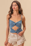 BiBi Rayon Span Jersey Knit Double Twist Front Cami Top