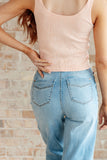 This tank is the perfect combination of function and fashion. Crafted from ribbed fabric with a seamless finish, it offers a flattering, cropped fit that can be customized with your choice of v-neck or scoop neck. Plus, its mineral wash makes it a true stand-out piece.