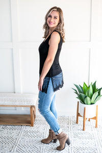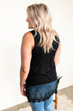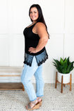 This little top adds the perfect flair to any outfit with that spectacular lace extension at the hem. Whether you wear this on its own or pair it with a cardigan or light jacket, this one will absolutely go the distance for you, all season long.