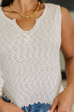 Stay cool and stylish in the What's the Plan Lettuce Hem Tank. Crafted from textured knit with high stretch, this sleeveless top features a playful keyhole neckline and a flirty lettuce hem. Perfect for sunny days or layering up with your favorite jacket!