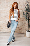 Live the life of luxury in this Yacht Life Striped Knit Tank! Made with a sweater knit fabric, this tank boasts a halter silhouette and banded ribbed hem for a flattering fit. The banded ribbed neckline and sleeve cuff add a touch of sophistication, while the keyhole button closure adds a playful pop.