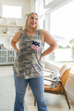 This Camouflage Flag Pocket Tank blends style and comfort in one. It features a scoop neckline and soft knit fabric for a comfortable fit. A bold camouflage pattern and flag print pocket on the front lends classic style.