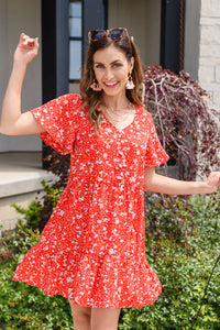The Way Back Dress has us planning a day trip to the mountains so we can frolic through the flower fields! This stunning red dress is painted in dainty white flowers that features a v-neckline, short flounce sleeves, and tiered bodice. For a cute summer look pair with white sandals, a matching bag, and a sun hat!