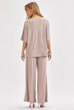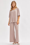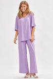 This stylish and versatile two-piece set is designed for both comfort and flair. It features a v-neckline tunic top paired with loose, wide-leg pants for a polished yet laid-back vibe. The elastic waistband ensures a flexible, comfortable fit, allowing for ease of movement while maintaining a chic look. Crafted from wrinkle-free fabric, it's the perfect combination of comfort with modern fashion, making it perfect for casual outings or everyday wear.