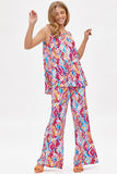 Gorgeous and breezy, gracing your body with a fit that's both flattering and relaxing, this wrinkle-free printed set is the perfect solution for you this spring/summer! We love the sleeveless blouse that prioritizes both comfort and style, which can easily transition from travel to leisure. The unique print in trendy hues features a loose-fit and an elastic waistline that will keep you cool for the warmer days ahead!