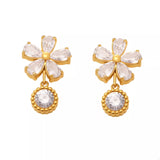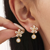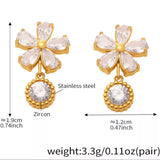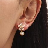 18K Gold-Plated Stainless Steel Zircon Flower Drop Earrings