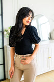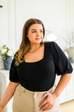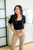 This A Total Vision Square Neck Bodysuit is the perfect elevated base layer to bring your wardrobe to life. Its square neckline and balloon half sleeves provide a casually cool and easy fit, while the lightweight knit keeps you comfortable all day. Make a statement in this stunningly simple must-have!