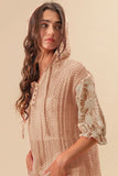 BiBi Jacquard Flower Puff Sleeve Hooded Knit Top