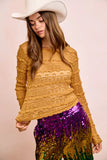 BiBi Ruffles Detail Mardi Gras Color Flower Lace Top