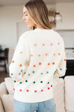 This Candy Buttons sweater features a cozy knit with rainbow-hued pom pom details for a unique look. The round neckline and long sleeves provide a comfortable fit, while ribbed hems complete the design. Cozy and stylish–all in one!