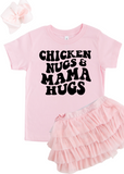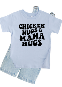 Give your child the ultimate combo of comfort and cuteness with our Chicken Nugget KIDS t-shirt. Featuring a fun print of chicken nuggets and "mama hugs", this crew neck tee will make your little one look and feel extra adorable. Perfect for playdates, naptime, or just lounging around with a side of nugs.