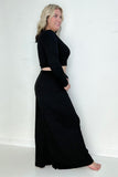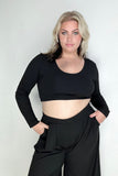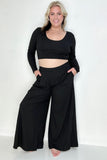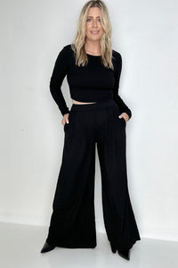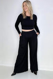 Black Ribbed Crop Top And Wide Leg Pants Set esb