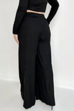 • Black Ribbed Crop Top And Wide Leg Pants Set esb