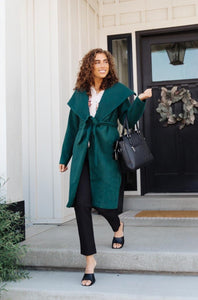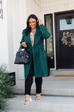 The Paislynn Trench Coat is a stylish, extravagant, chic coat that is a stunning deep hunter green color! It feels so festive and upscale. It's heavyweight, so it'll keep you warm and looking so trendy. It also features an adjustable tie detail at the waist.