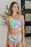 Soak up the sun and channel your inner goddess with our Corfu Marble Cutout Swimsuit. With its bright and playful design, this swimsuit is perfect for your next island adventure. Featuring an asymmetrical neckline, removable cups, and a cheeky fit, it's both stylish and functional. Plus, the bright marble print and cutout adds a fun and flirty touch. Get ready to hit the Greek isles in style!