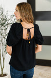 Stay cool and stylish with our Craft Night Crochet Detail Top. Made from lightweight gauze, this top features a square neckline and balloon sleeves with cased elastic cuffs. The granny square crochet details add a unique touch, while the functional back tie with bead details adds a playful element. Perfect for a fun night out!