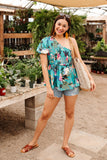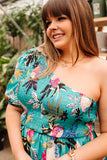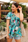 Say goodbye to your basic summer tops with the Day Trip Blouse! An adorable one shoulder silhouette falls into a shirred bust, and peplum style bodice, with a puff sleeve elasticated at the cuff. Style this bold top with white skinnies, sunnies, nude sandals, and bright accessories for a fun resort inspired look!