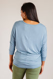 Elevate your everyday look with the Daytime Boat Neck Top in Blue Gray! Its lightweight and stretchy fabric make it comfortable, while the ruched side detail adds a touch of sophistication. The 3/4 sleeves make it perfect for any season. Get yours today and feel stylish without breaking the bank!