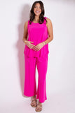 Gorgeous and breezy, gracing your body with a fit that's both flattering and relaxing, this wrinkle-free solid set is the perfect solution for you this spring/summer! We love the sleeveless blouse that prioritizes both comfort and style, which can easily transition from travel to leisure. This set in trendy hues features a loose-fit and an elastic waistline that will keep you cool for the warmer days ahead!