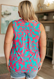 Lizzy Tank Top in Aqua and Pink Filigree