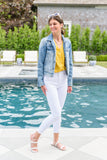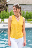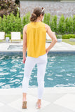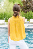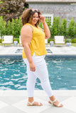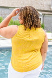 A top as cute as this one has us excited to get dressed in the morning! We are so obsessed with the adorable yellow and white polka dot print, button front, v-neckline and a-line silhouette! Style with white jeans and matching shoes for a chic and fashionable look!