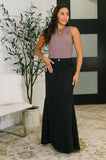 Meet the Of Course I Still Care Maxi Mermaid Skirt—your new go-to for effortless elegance with a twist. Crafted from structured woven material, this high-waisted beauty features a flattering silhouette that means business. The back cased elastic keeps you comfortable all day, while the button and fly closure adds vintage charm. Practical touches like functional front pockets, a back patch pocket, and belt loops make this skirt as smart as it is stunning. Dive in and let your style make waves.