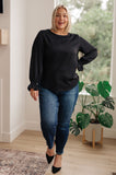 Peaceful Moments Smocked Sleeve Blouse in Black