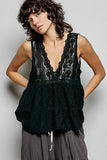 POL Deep V-Neck Scalloped Lace Sleeveless Top