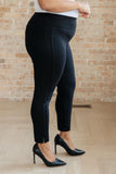 Achieve effortless style and comfort with our Magic Skinny Pants! These high rise pants feature a slim fit and ponte knit for a flattering silhouette. A pull-on design offers convenience while the tuxedo stripe and faux welt pockets add a touch of sophistication.