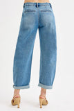 RISEN Full Size Mid Rise Fit Barrel Roll Up Jeans