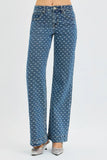 RISEN High Rise Wide Leg Bow Embroidered Jeans
