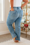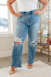 Your best outfits start with the Rose High Rise 90's Straight Jeans! Featuring a stretchy, light wash denim that shapes a high rise waist with five pocket cut and zipper fly. 90's Straight cut pant legs end with chewed hems with distressing at the knees.