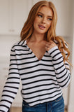 Stay cozy and on-trend with this Self Improvement V-Neck Striped Sweater. This lightweight sweater knit features a classic stripe print, with a collared v-neckline to complete the look. With timeless style and comfort, it's the perfect addition to your wardrobe.